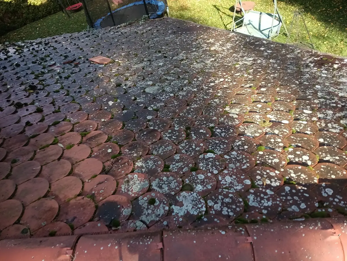 dach po czyszczeniu ciśnieniowym – usunięte naloty biologiczne i przywrócony estetyczny wygląd