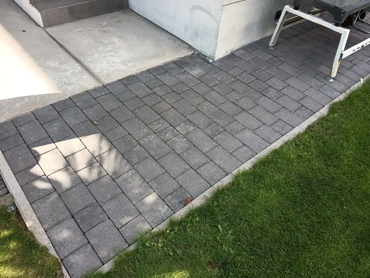 czysta kostka brukowa po czyszczeniu – odświeżona nawierzchnia wokół tarasu