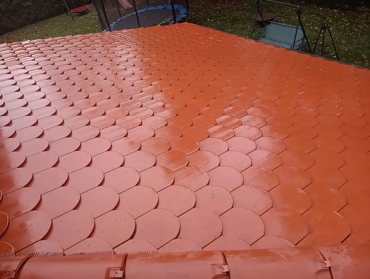 czysty dach po myciu ciśnieniowym – usunięty mech, porosty i wieloletnie zabrudzenia