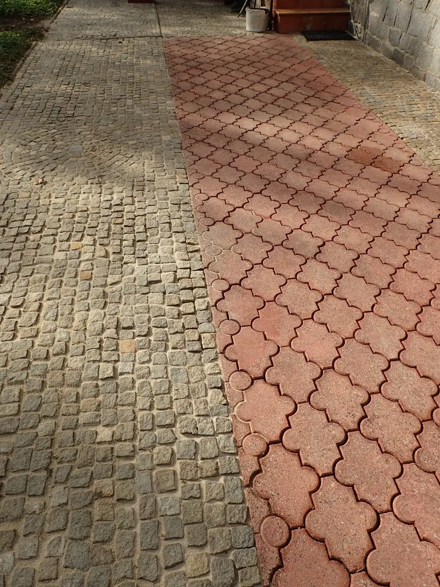 czysta kostka brukowa po myciu – odświeżony podjazd i usunięte zabrudzenia