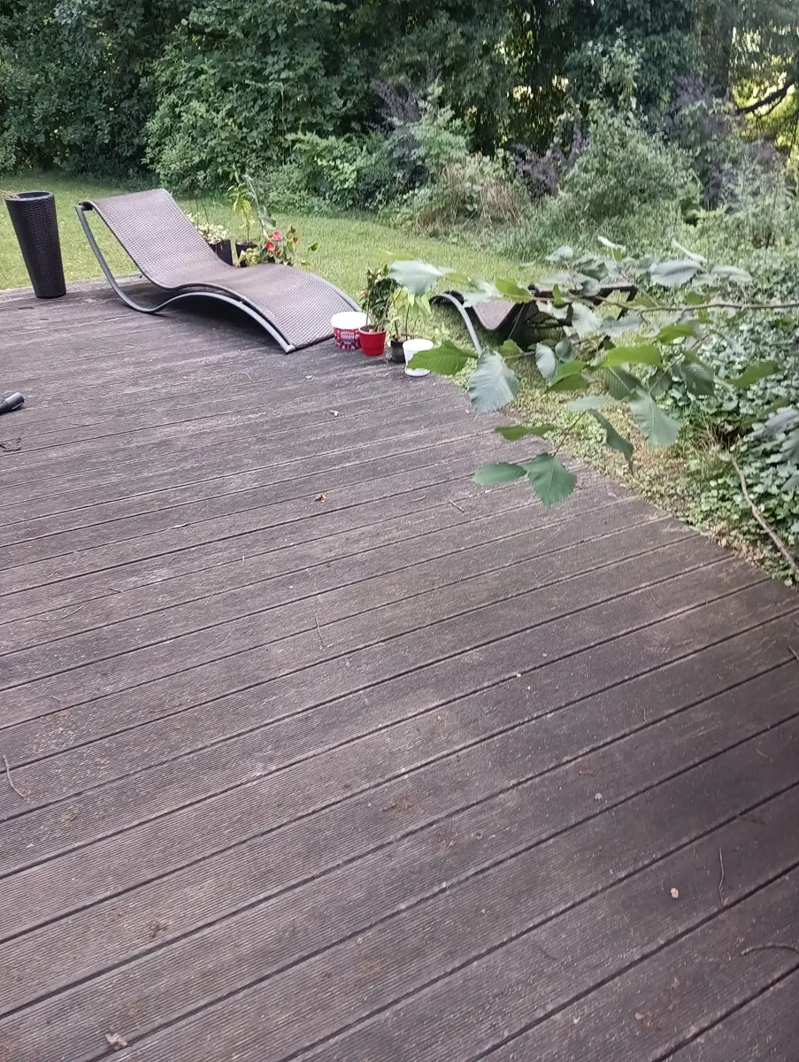 oczyszczony taras drewniany po myciu – odświeżone deski tarasowe bez nalotów