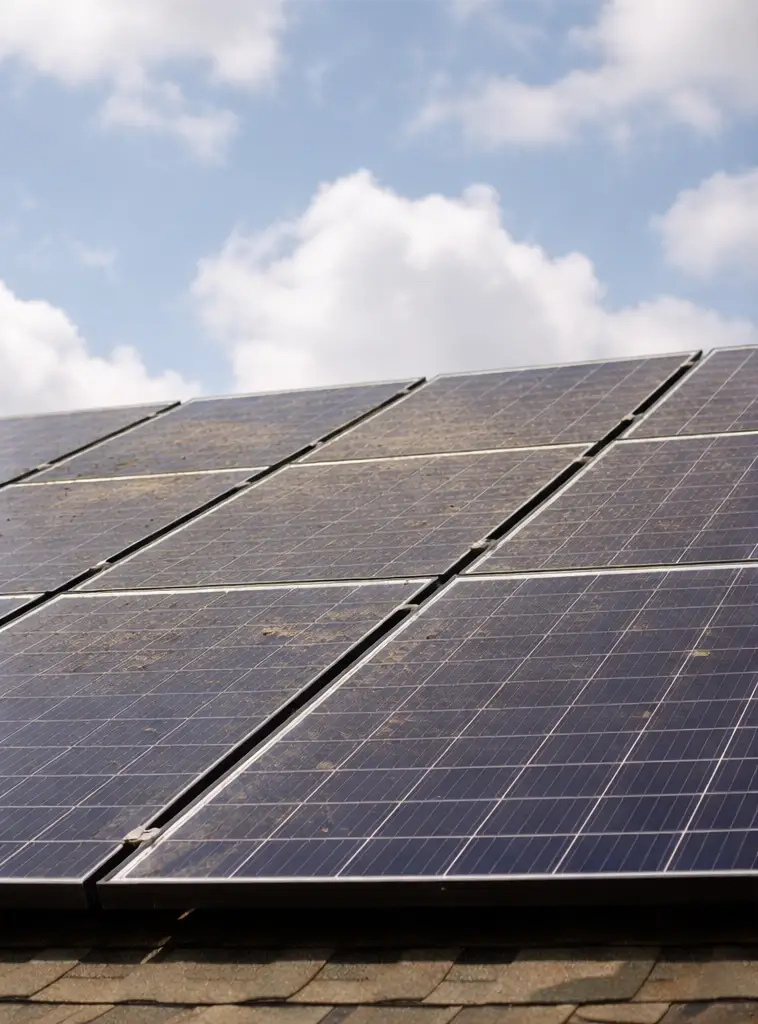 panele fotowoltaiczne przed myciem – widoczne zabrudzenia na powierzchni modułów PV