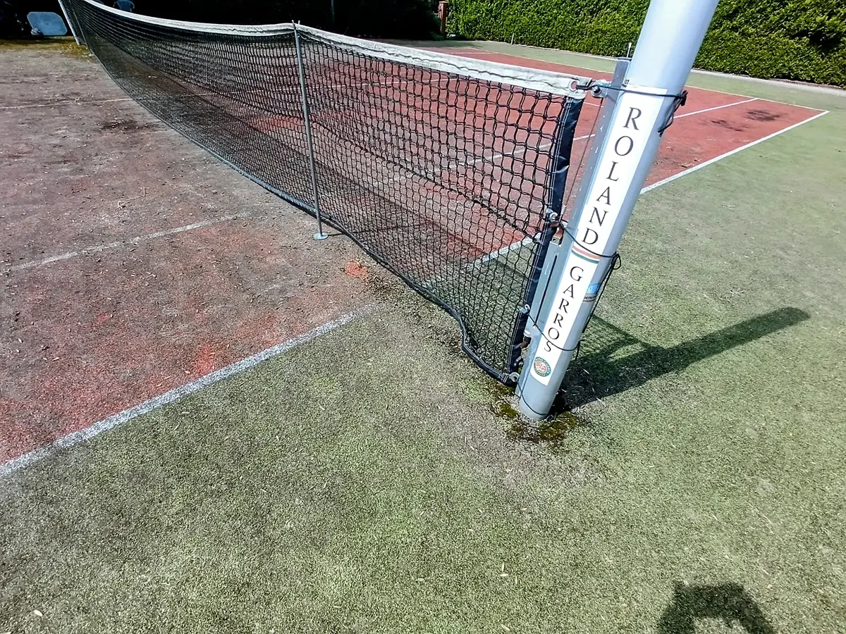 kort tenisowy przed czyszczeniem – zabrudzona nawierzchnia sportowa z widocznymi osadami