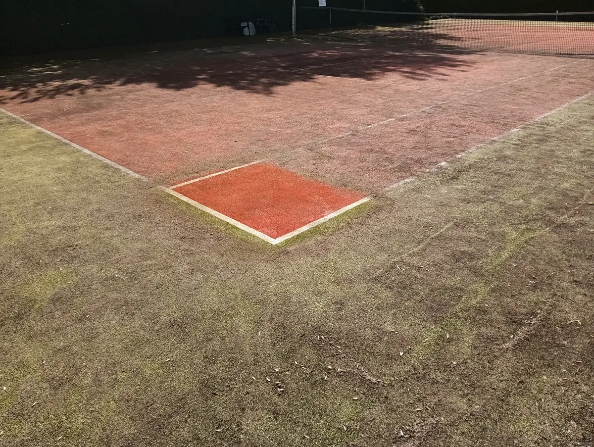 zabrudzony kort tenisowy ze sztucznej trawy – powierzchnia przed czyszczeniem